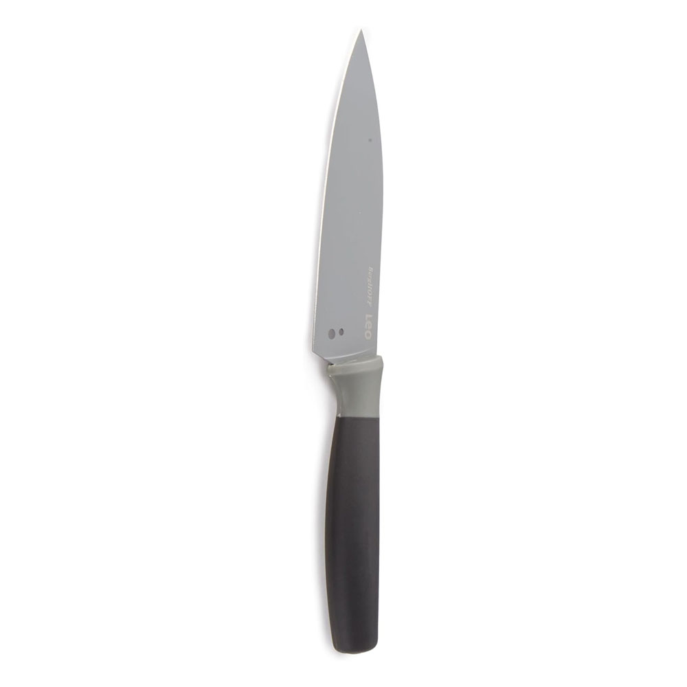 ” Blade with non-stick coating,Wide stainless steel blade,Fitted protective sleeve to protect your hands and the blade,Built-in herb stripper,Ergonomic soft-touch handle for optimal control,Upward curved tip allows rocking the knife for easy mincing,The wide blade makes the knife also suitable for cleaver use “